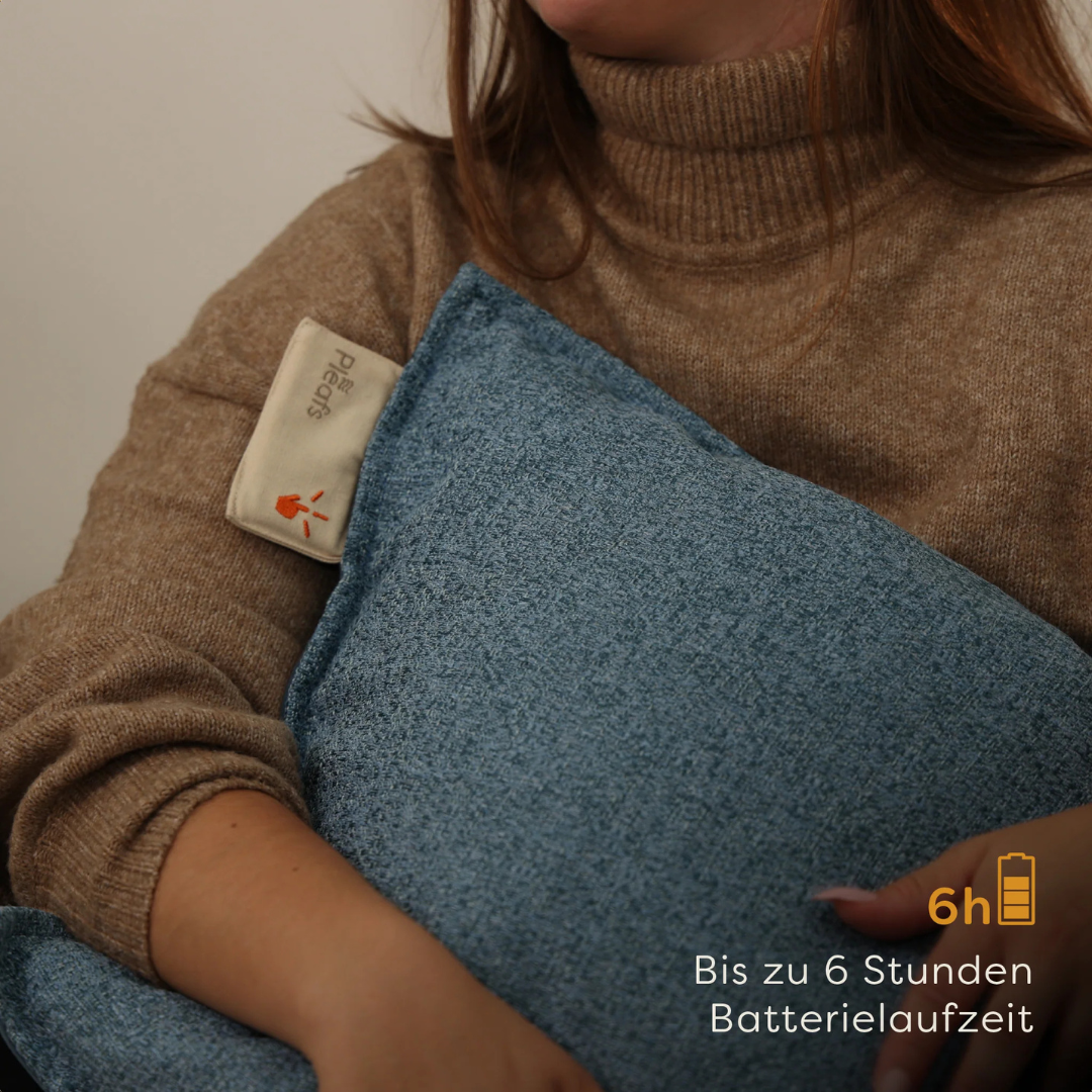 Genießen Sie bis zu sechs Stunden Wärme mit dem kabellosen elektrischen Pleafs®-Heizkissen Nomad Shadow Blue. Erleben Sie Komfort ohne Einschränkungen durch Kabel!