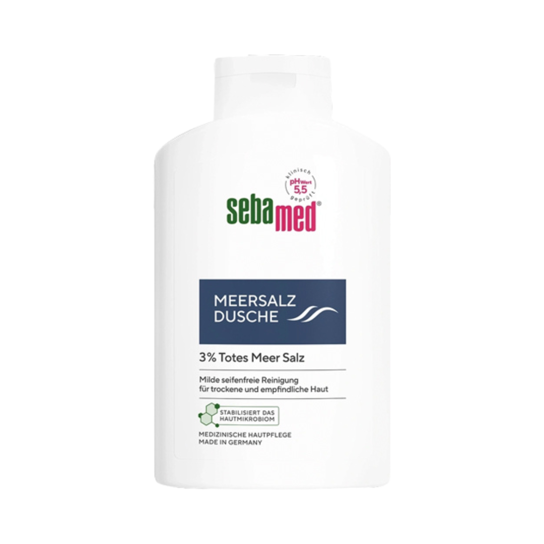 Die Produktlinie sebamed Meersalz vereint die positiv hautwirksamen Eigenschaften des Toten Meer Salzes und macht damit die Körperpflege zu einem unvergleichlichen WohlfühlRitual für trockene und empfindliche Haut. Das Besondere an der Produktlinie sebamed Meersalz ist ihr Gehalt von 3 % Totes Meer Salz. Meersalz mit seinen lindernden und regenerierenden Eigenschaften ist dafür bekannt das Hautbild nachhaltig zu verbessern. Die milde Pflegeformel der sebamed Meersalz Dusche mit original Totes Meer Salz Mineralien eignet sich für die Reinigung der trockenen und empfindlichen Haut reinigt seifenfrei stabilisiert die Feuchtigkeitsbalance der Haut entspannt die Haut und verleiht ein gesundes Frischegefühl Dermatologischklinisch getestet. Der pHWert 5,5 stabilisiert den Hautschutzmantel und stärkt damit die Widerstandskraft der Haut gegen schädigende äußere Einflüsse. 0% Mikroplastik 0% PEG 0% Silikone
